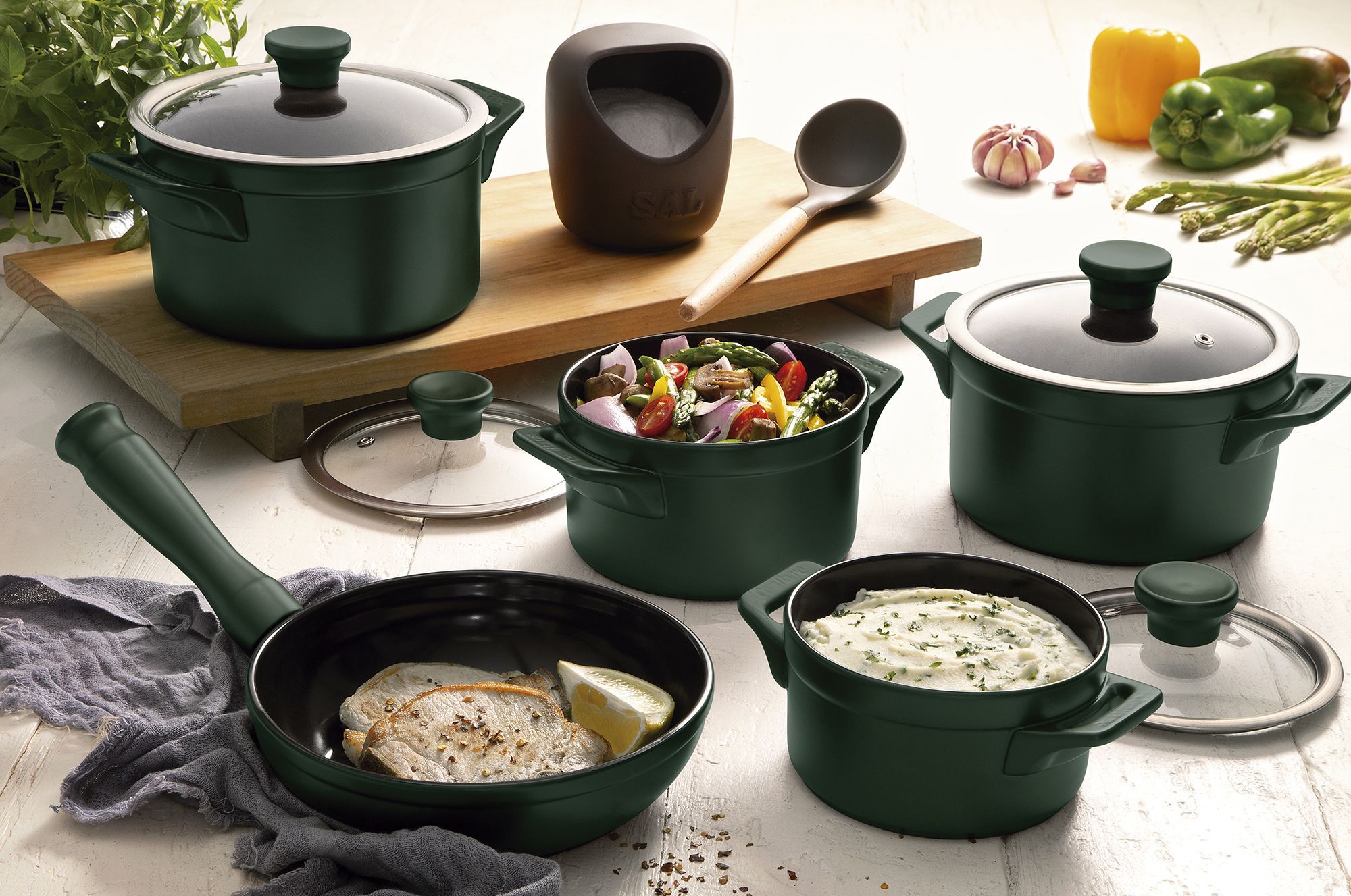 01 Caçarola 14cm – 900ml / 01 Caçarola 16cm – 1500ml / 01 Caçarola 18cm – 2000ml / 01 Caçarola 20cm – 3000ml