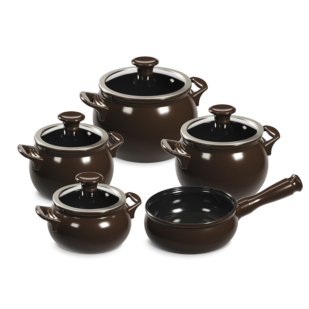 Jogo De Panelas De Cerâmica Ceraflame New Premiere (Joy) 5 peças – Chocolate